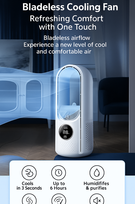 Bladeless Turbo Fan with LED Display – Compact, Quiet Cooling Solution for Bedrooms and Living Rooms