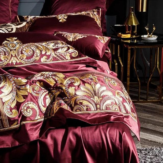 RoyalFier – Elegant Red and Gold Egyptian Cotton Duvet Set for Ultimate Luxury
