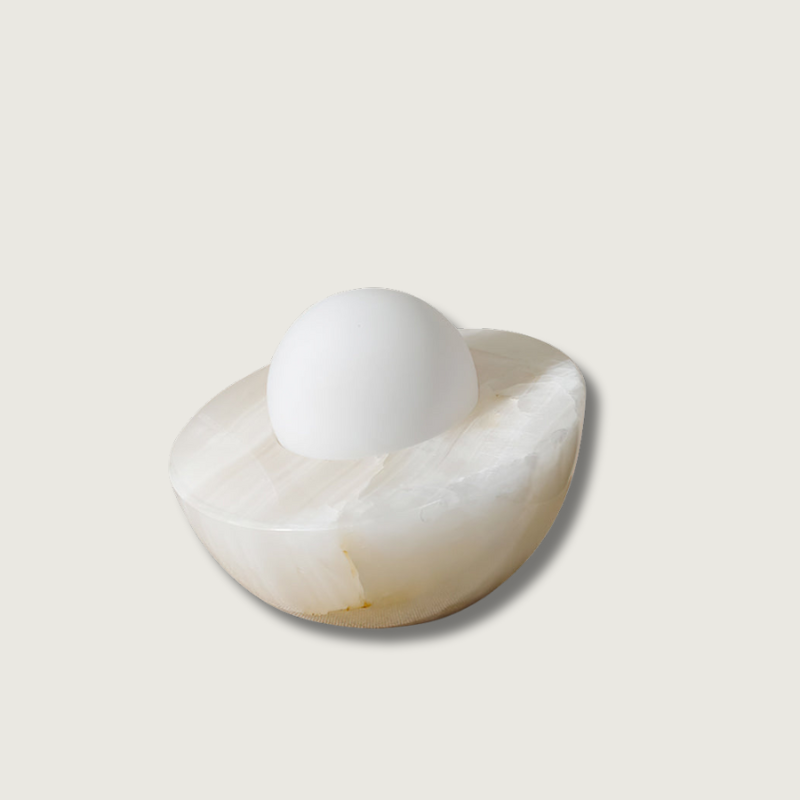 - Flydende æstetik: Glaskuglen hviler blidt på marmorbasen for et harmonisk udseende.