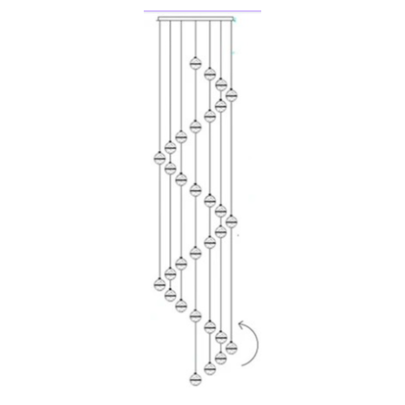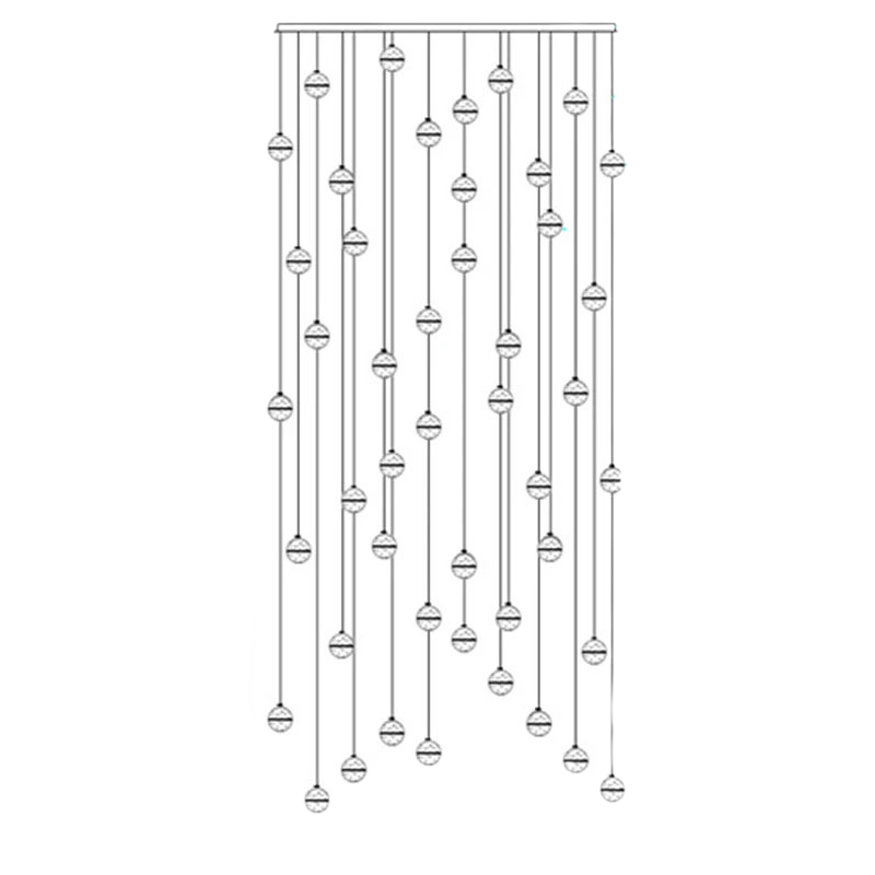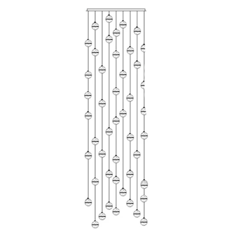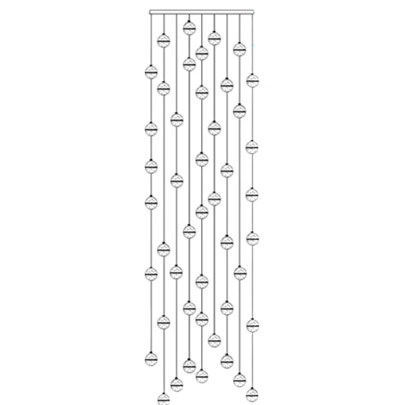 Forbedr skønheden i ethvert rum med GlowCrystal Pendellampe. Det elegante design af krystalkugler, lavet af klart frøet glas, tilføjer et strejf af luksus. Kuglerne hænger fra en rund, firkantet eller rektangulær loftmontering, med ledninger i forskellige længder for at skabe den perfekte atmosfære.
