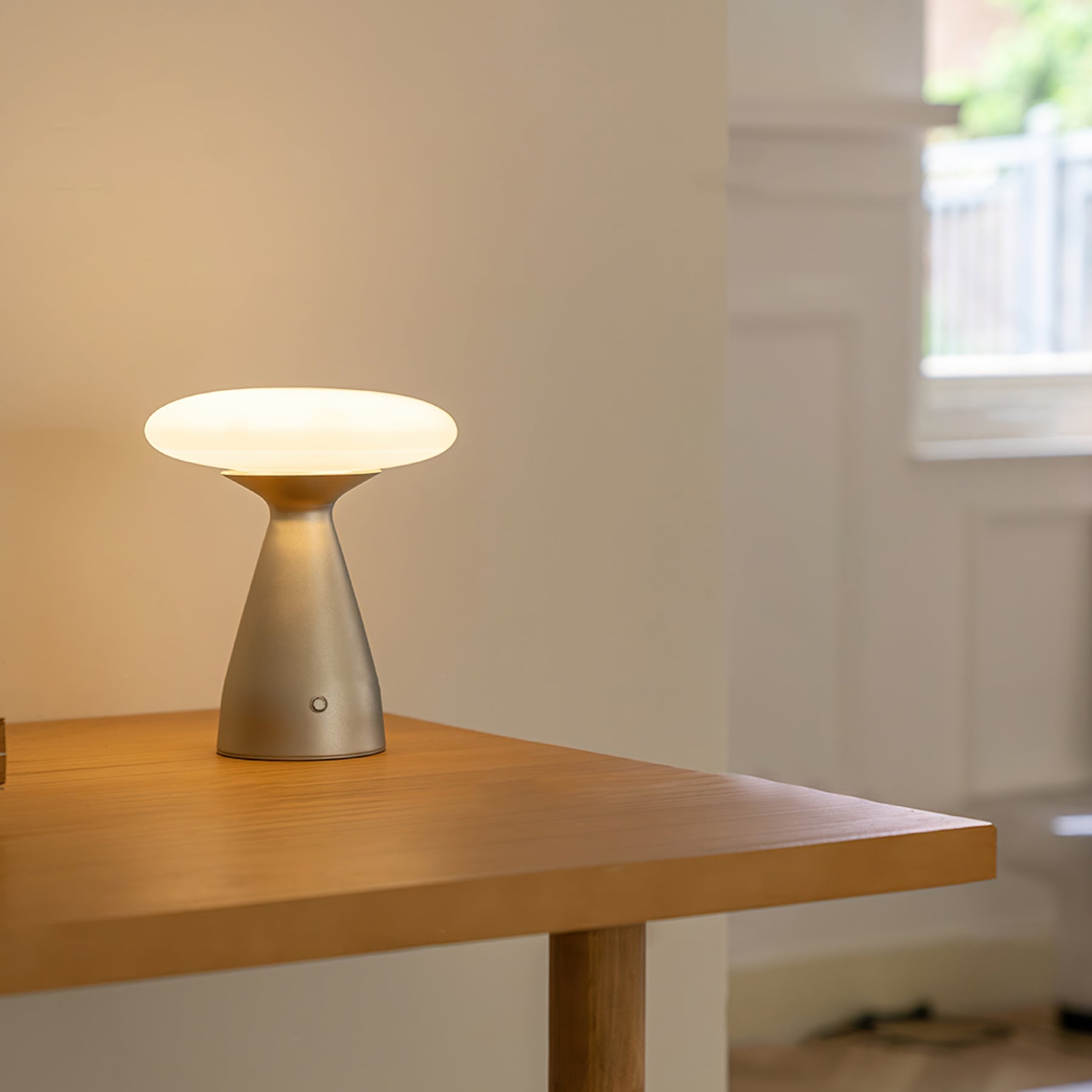 - Kompakt størrelse: Med en diameter på 18 cm og en højde på 20,5 cm er denne lampe perfekt til mindre overflader.