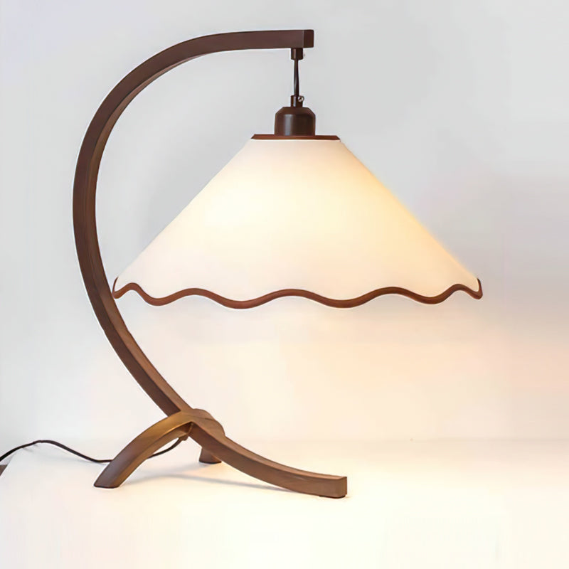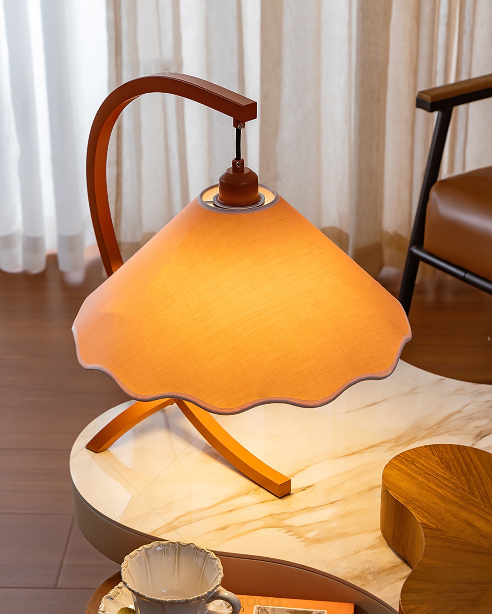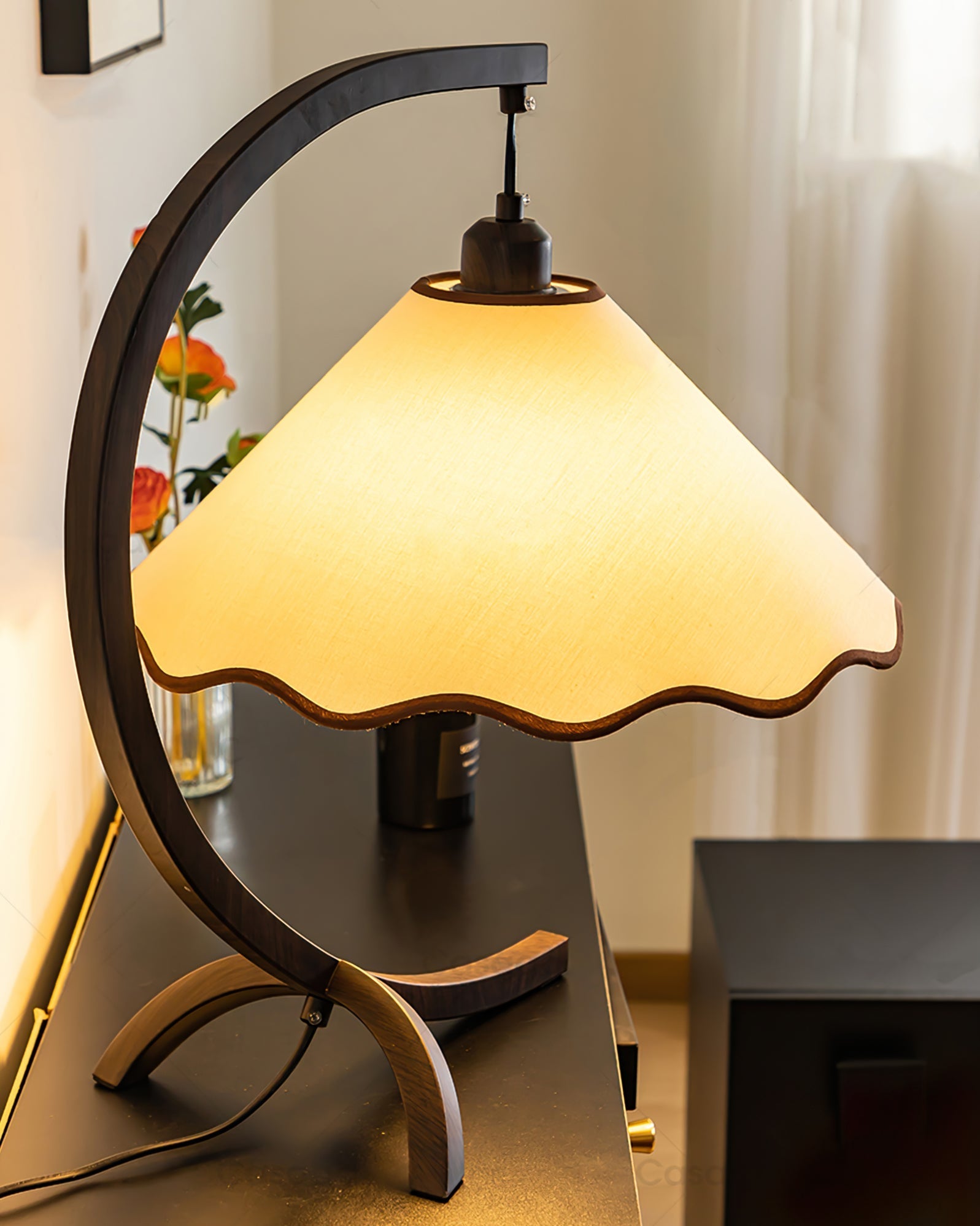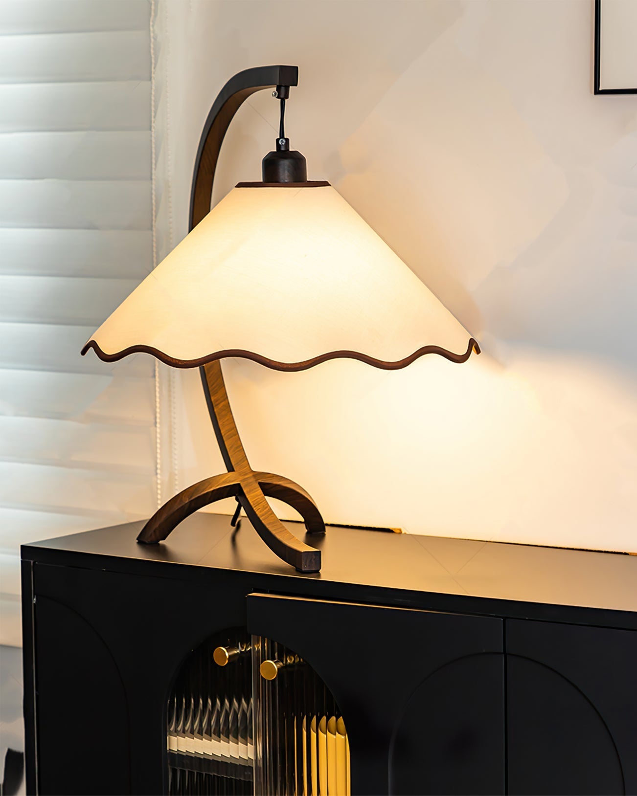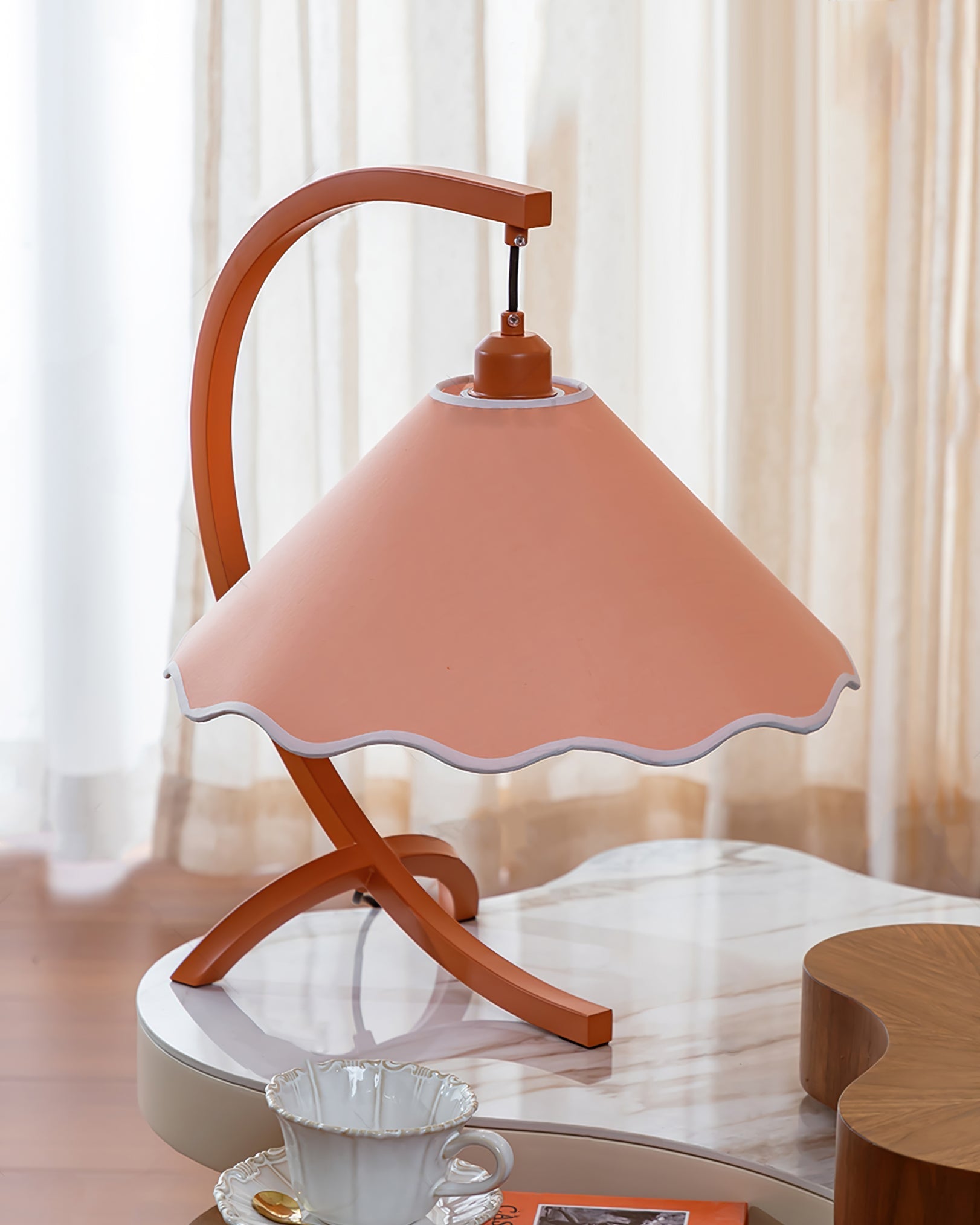 Kira Bordlampen tilføjer et legende præg til din indretning. Med en unik buet grøn ramme og en charmerende scalloped skygge kombinerer denne lampe retro stil med et moderne twist. Den bløde hvide skygge diffunderer lyset smukt og skaber en varm og indbydende atmosfære. Perfekt til natborde, skriveborde eller som et iøjnefaldende accent i stuen, er Kira Bordlampen et stilfuldt supplement, der tilføjer personlighed og farve til ethvert rum.