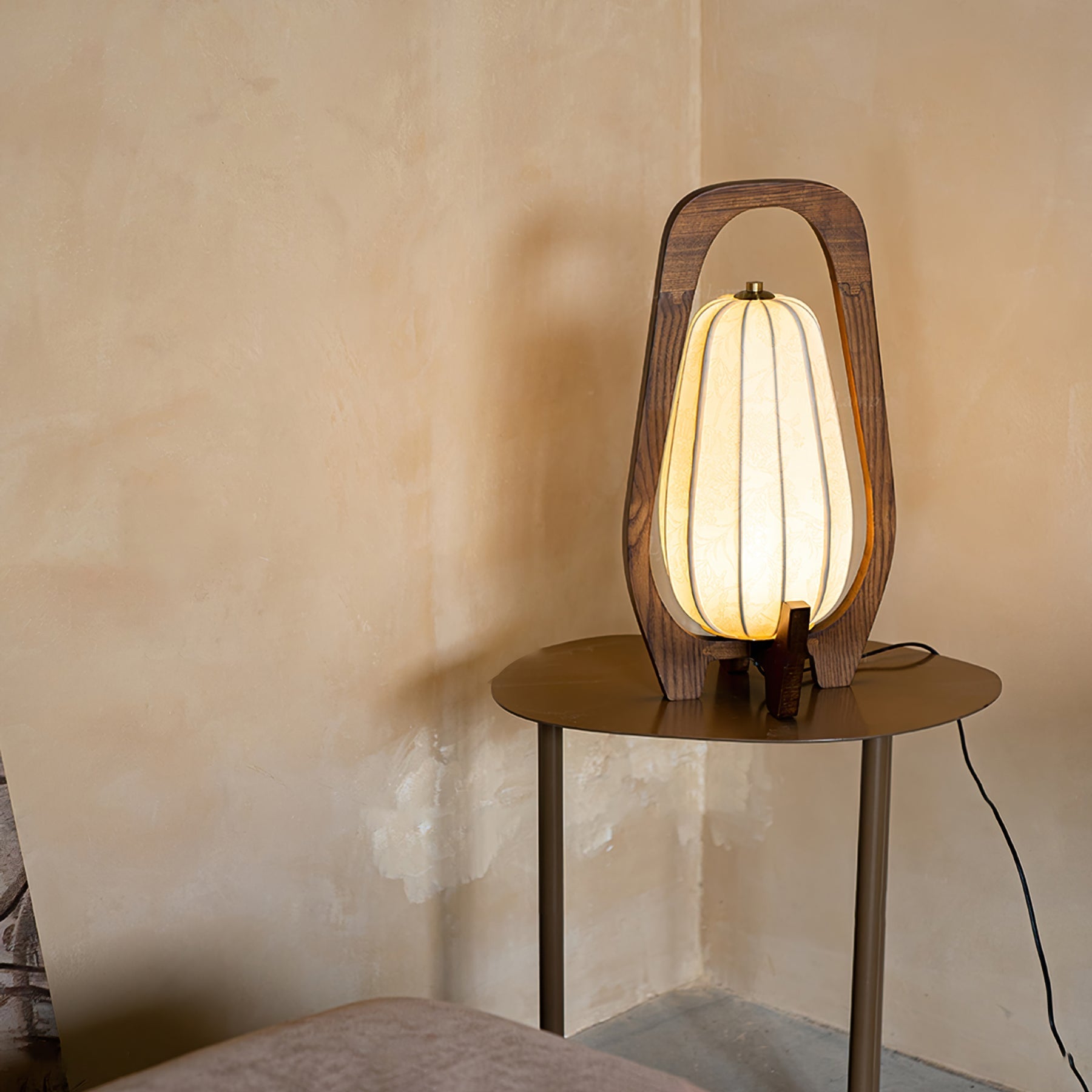 - Traditionelt håndværk: Den træramme og den detaljerede stofskygge giver lampen en unik karakter.