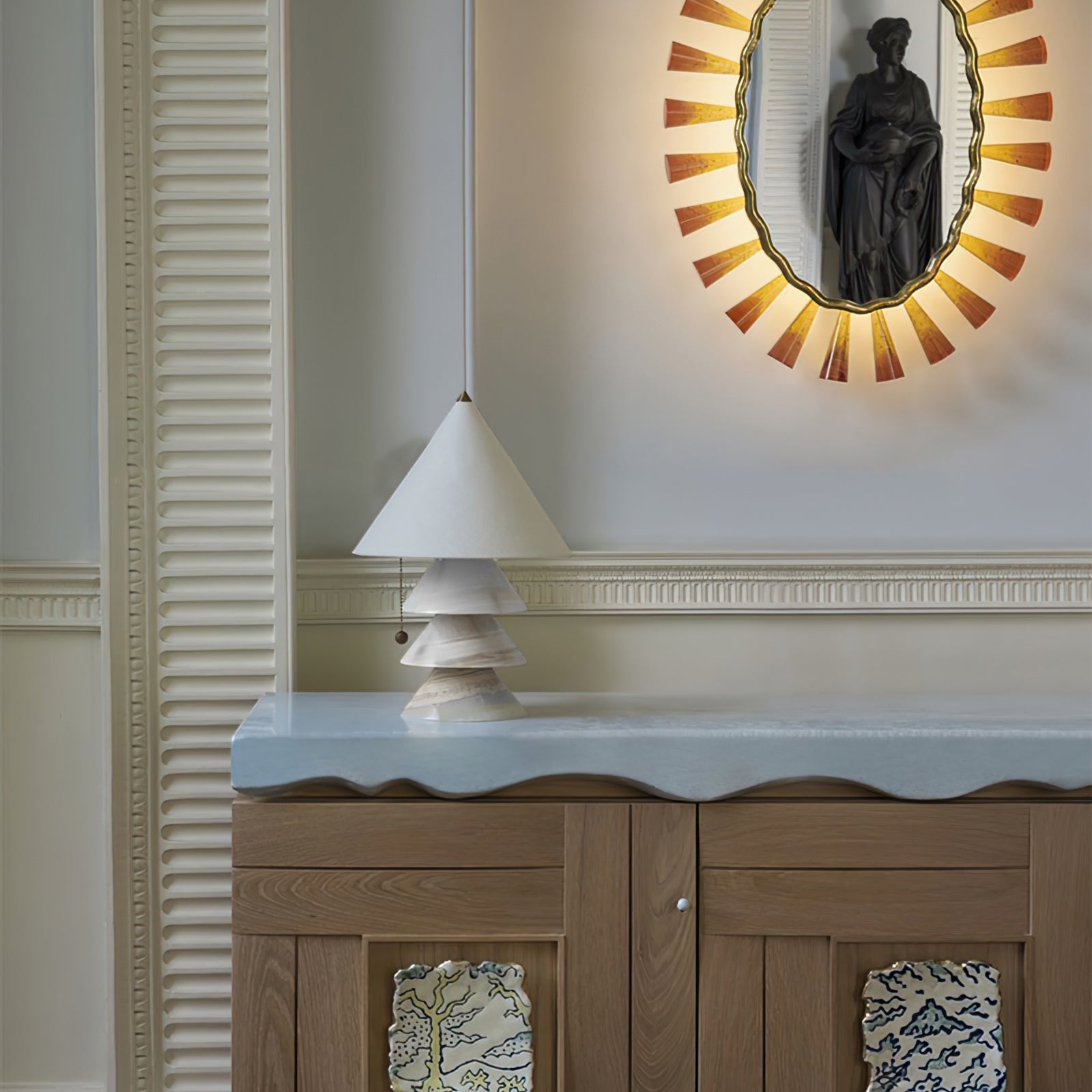 Pyramid Glow bordlampen fra Dekorfine kombinerer elegance fra naturlig marmor med varmen fra stof, hvilket skaber fortryllende belysning. Den tierede marmorbasis, designet i en unik pyramideform, tilføjer et strejf af arkitektonisk raffinement, mens den bløde stofskærm jævnt spreder lyset og tilbyder en beroligende glød. De subtile lyserøde nuancer af marmor harmonerer med den neutrale farve af stoffet, hvilket gør det til et alsidigt accentstykke, der passer til moderne, rustikke eller eklektiske interiører.