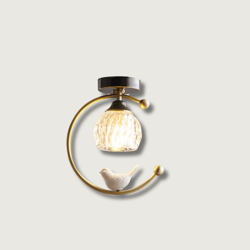 Gør dit rum unikt med denne specielle loftlampe, der kombinerer skønheden af keramiske fugleaccessories med en elegant kobberlampe. Kombinationen af den sort-guld finish og det delikate design af den keramiske fugl gør denne lampe ikke kun funktionel, men også et kunstværk. Perfekt til at tilføje et strejf af natur og sofistikering til dit interiør.