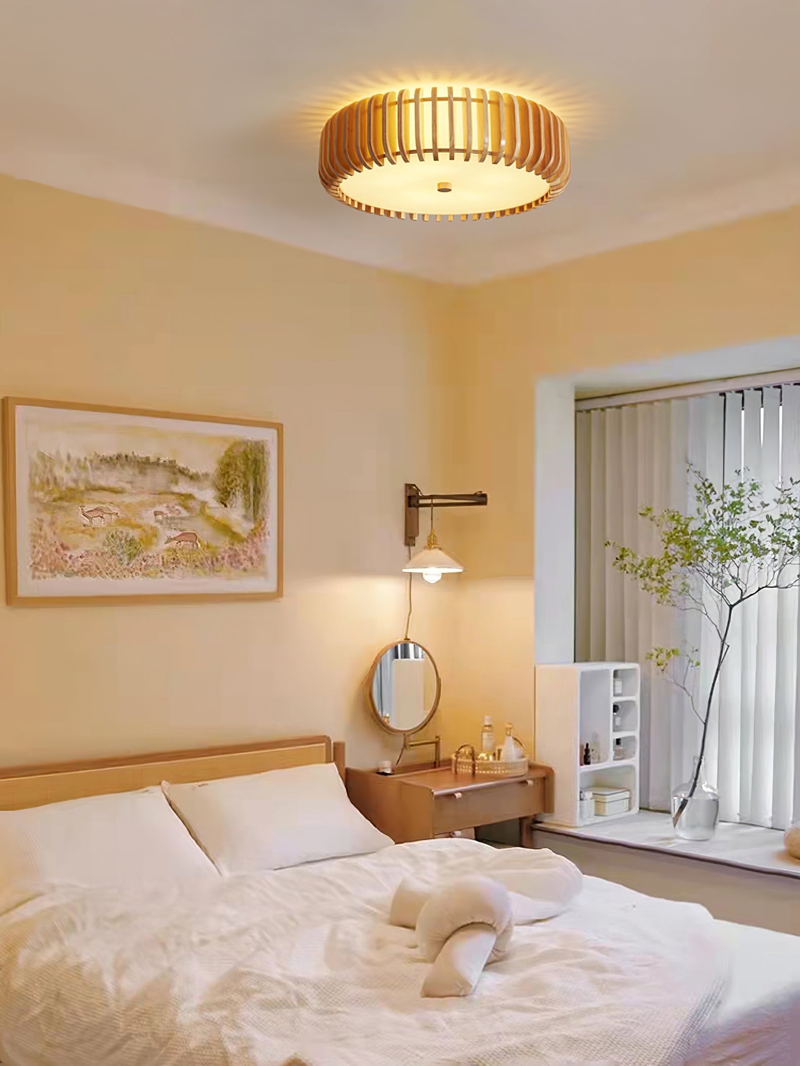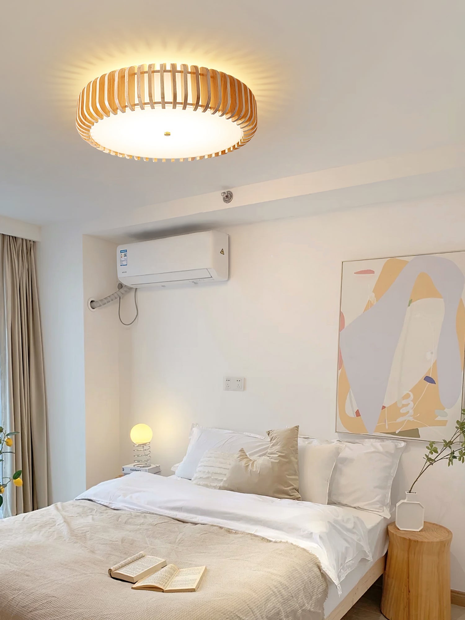 Lad dit interiør ånde med den naturlige skønhed af en loftlampe, der perfekt kombinerer enkelhed og raffinement. Designet med en minimalistisk tilgang bringer denne lampe naturen indendørs og giver dit rum en følelse af ro og elegance. Med sit slanke og organiske design tilføjer den blødt, varmt lys til ethvert rum.