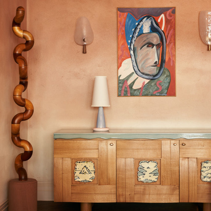 Kombinerer keramik og stof elegant, designet til at tilføje et strejf af charme og raffinement til ethvert rum. Den unikke lampeskærm er prydet med en båndlignende finish, der skaber en legesyg og delikat visuel effekt. Den keramiske base, færdiggjort i en blød pastelnuance, komplementerer den subtile tekstur af stoffet, hvilket gør det til et ideelt valg til moderne eller eklektiske interiører.