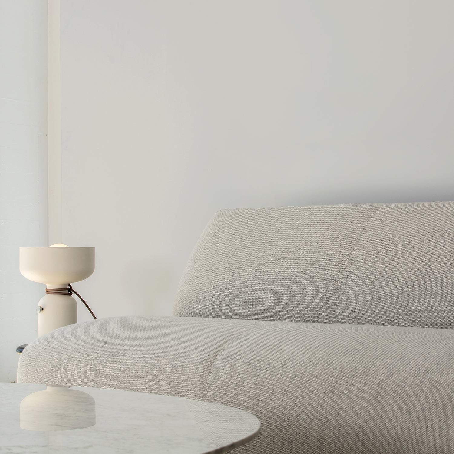 La lámpara de mesa Spotlight ofrece una forma clásica y simétrica que se adapta perfectamente a cualquier interior. Su característica única es el cable eléctrico, que se envuelve y anuda elegantemente en el medio, formando una conexión visualmente atractiva entre las dos mitades. Esta lámpara irradia equilibrio, proporción y simetría en su diseño.