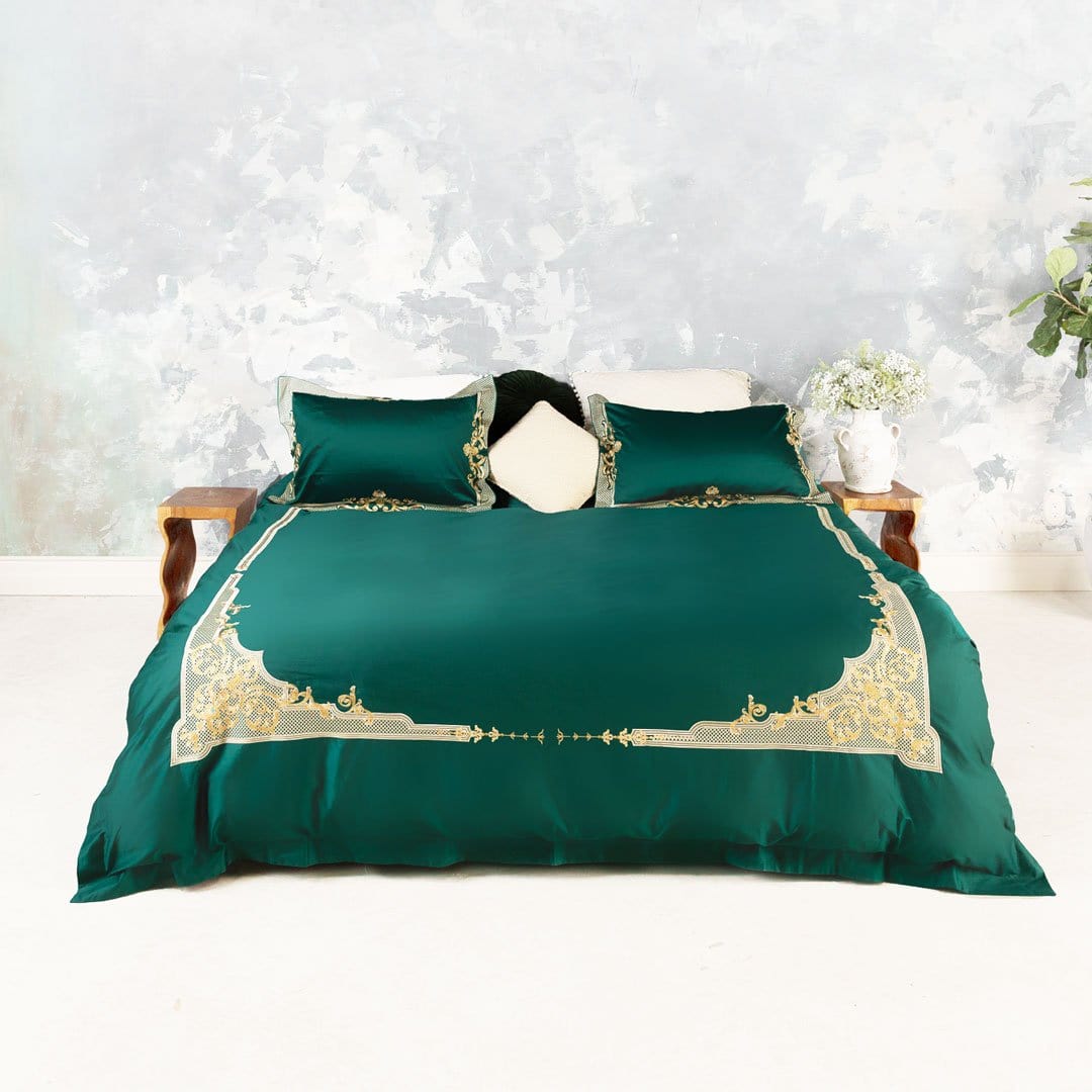 LuxeDream – Juego de Fundas de Edredón de Algodón Egipcio Verde Sereno