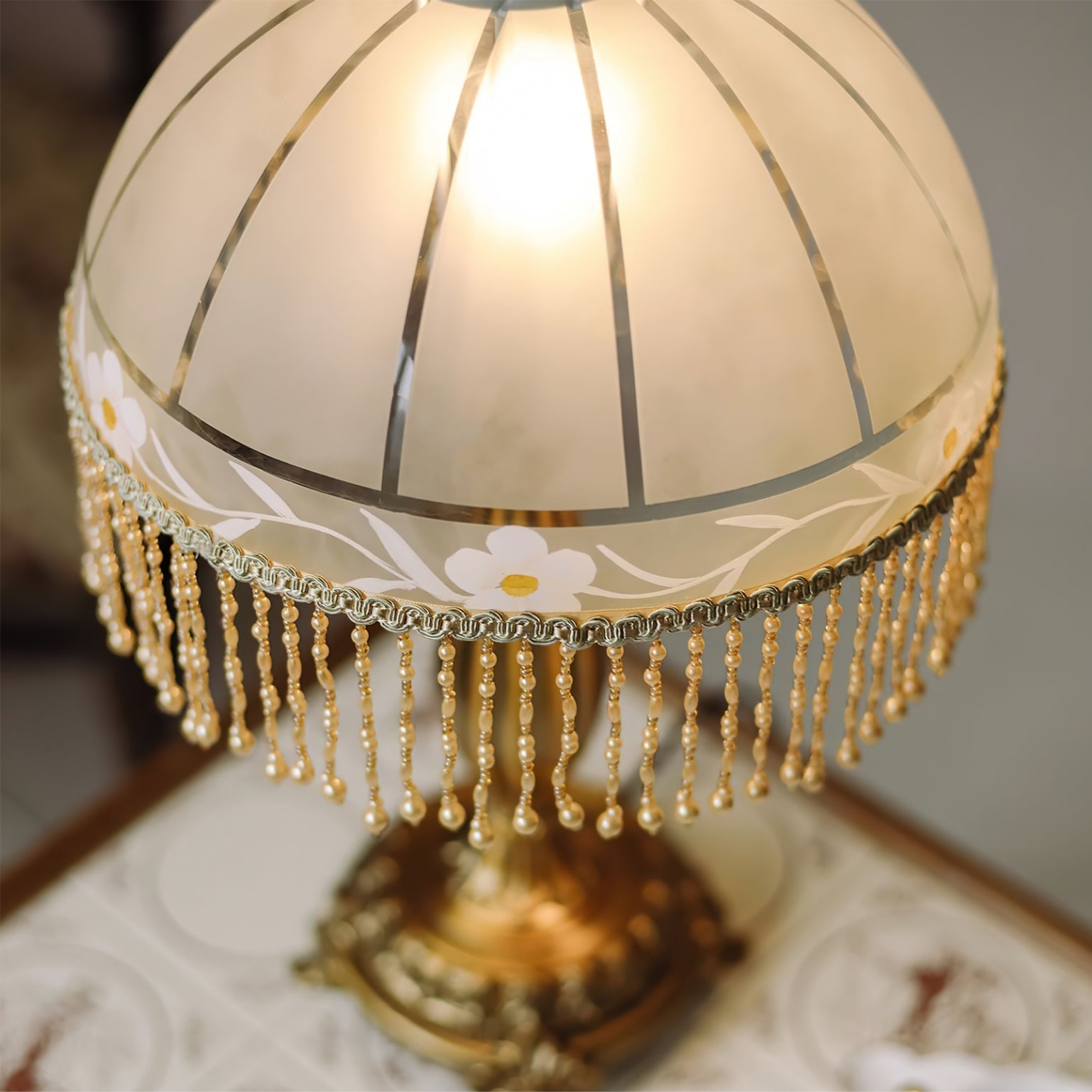 Ilumina tu espacio vital con esta impresionante lámpara de mesa. El diseño único que presenta un refinado borlas de flores y un acabado elegante añade un toque de sofisticación a tu interior. Ideal para la sala de estar o el dormitorio, esta lámpara es tanto decorativa como funcional.