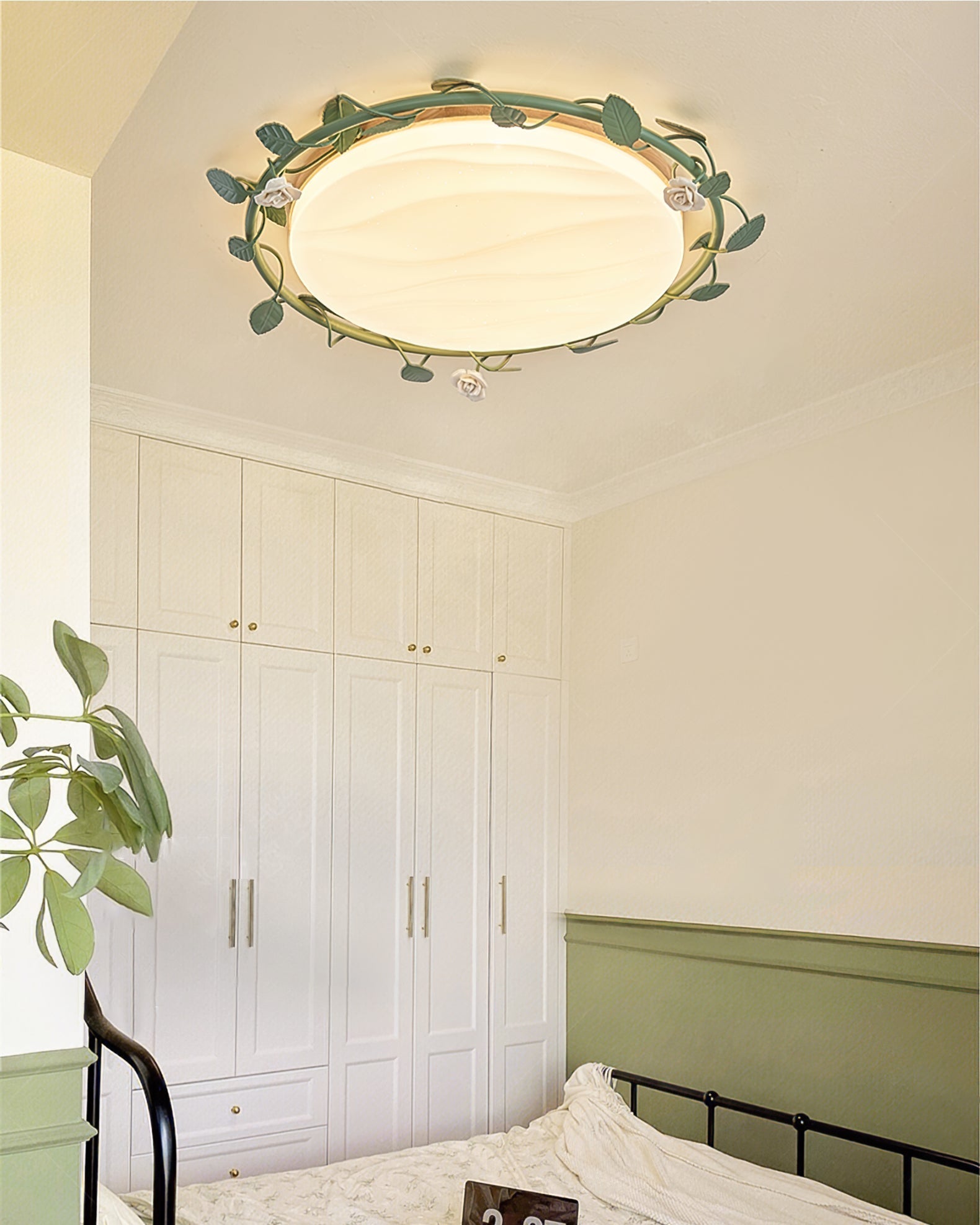 Cette lampe de plafond est l'ajout parfait à toute chambre romantique. Son design raffiné avec des roses et des accents verts apporte une touche d'élégance et de classe à votre espace. Cette lampe économe en énergie est un moyen facile d'ajouter de la couleur et de la chaleur à votre maison.