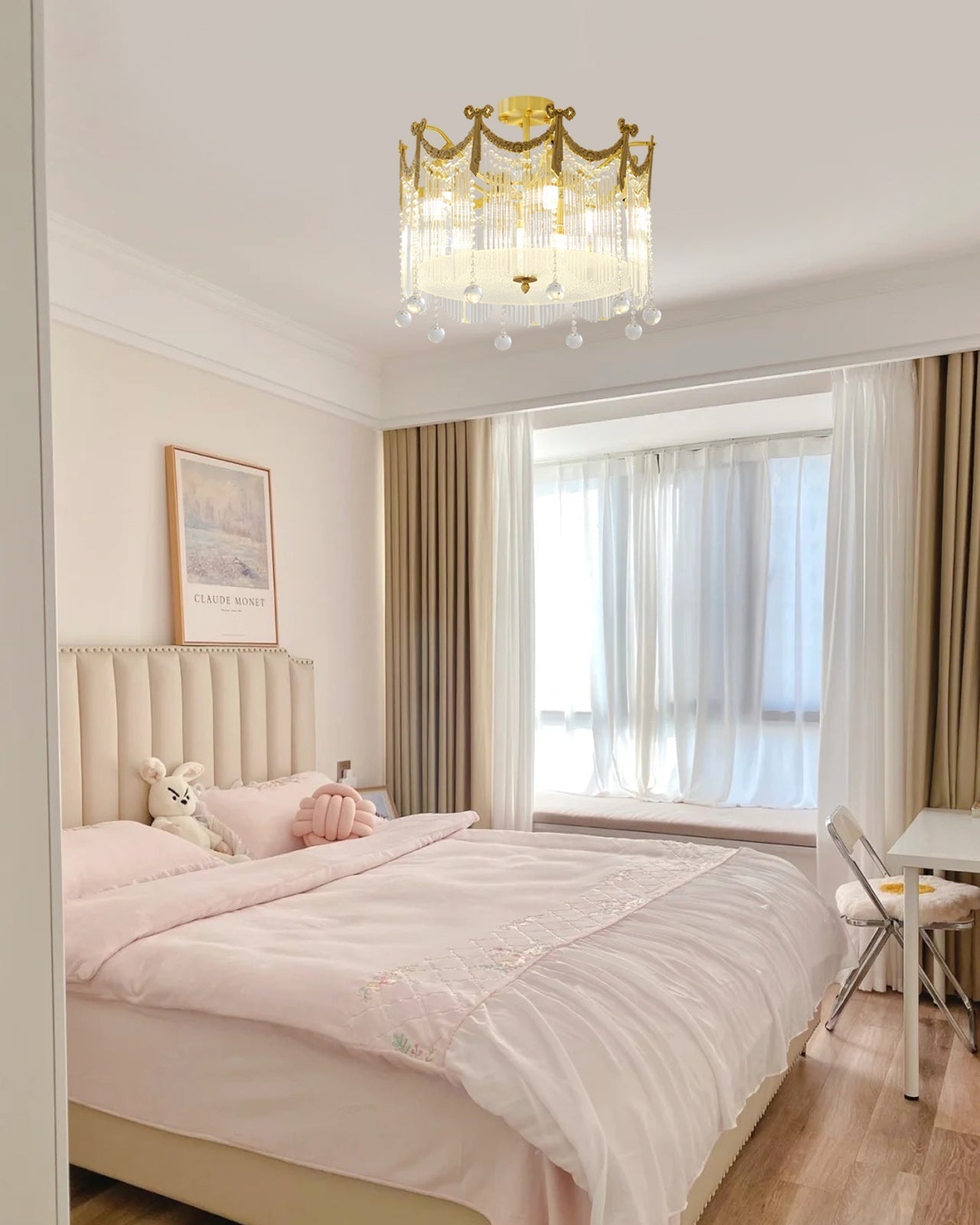 Cette lampe de plafond au design en goutte d'eau est un ajout à couper le souffle à tout espace. Les gouttes d'eau en cristal créent un effet lumineux étoilé étincelant qui apporte une ambiance magique à votre salon.
