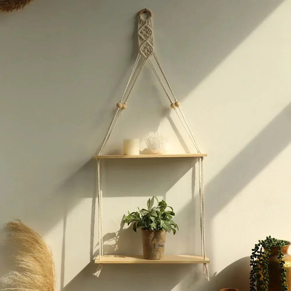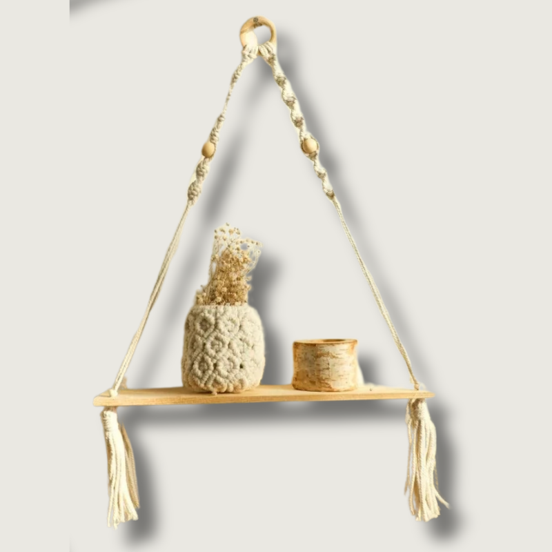 - Rustykalny urok boho: Podnieś swoje wnętrze dzięki idealnemu połączeniu drewnianych półek i misternych makram, aby uzyskać naturalny, rustykalny wygląd.