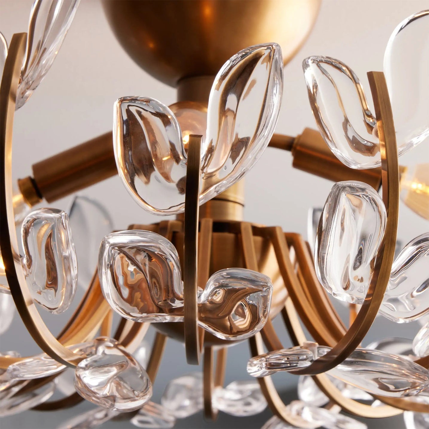 Lampa sufitowa LindsayAura Dekorfine emanuje ponadczasową elegancją dzięki swojemu wzornictwu inspirowanemu stylem vintage. Metalowa podstawa i delikatnie wykonane przezroczyste kwiatowe detale dodają wyrafinowanego akcentu. Ta lampa łączy klasyczną estetykę z nowoczesną funkcjonalnością, co czyni ją idealnym wyborem do wzbogacania przestrzeni o urok i wdzięk.