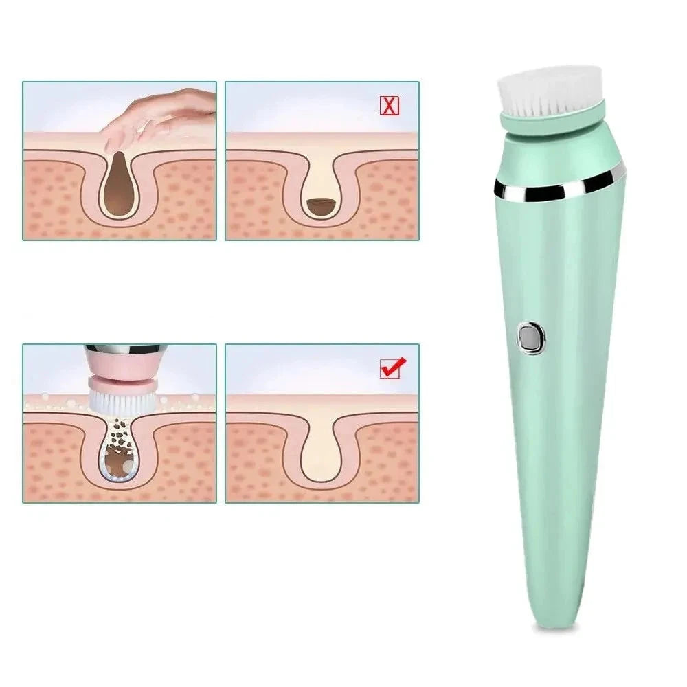 - 4-w-1 Funkcjonalność: Zawiera cztery unikalne końcówki szczoteczki, z których każda odpowiada różnym potrzebom pielęgnacyjnym, w tym delikatnemu oczyszczaniu, złuszczaniu i masażowi.