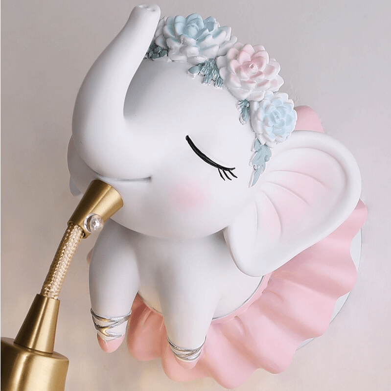 Add a playful and charming touch to the nursery with this elephant wall lamp. Made from resin and crystal, this lamp adds a magical accent to any room, perfect for creating a peaceful sleep environment.