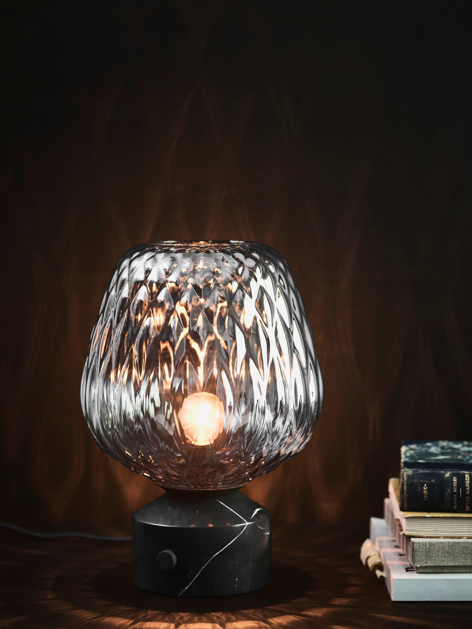 Modern Table Lamp with Sleek Glass Cover and Soft Light