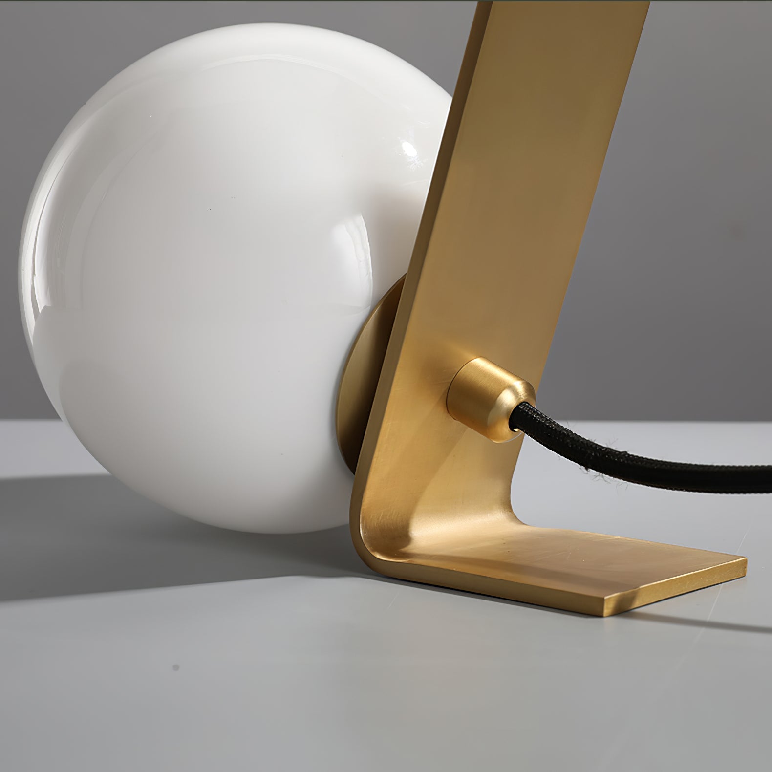 The MinimalDaphne table lamp adds a touch of refinement to any interior with its minimalist design and warm glow. The satin brass frame provides both stability and an elegant look, while the milk-white glass globe spreads cosy lighting. Perfect for any space that desires a modern yet inviting atmosphere.