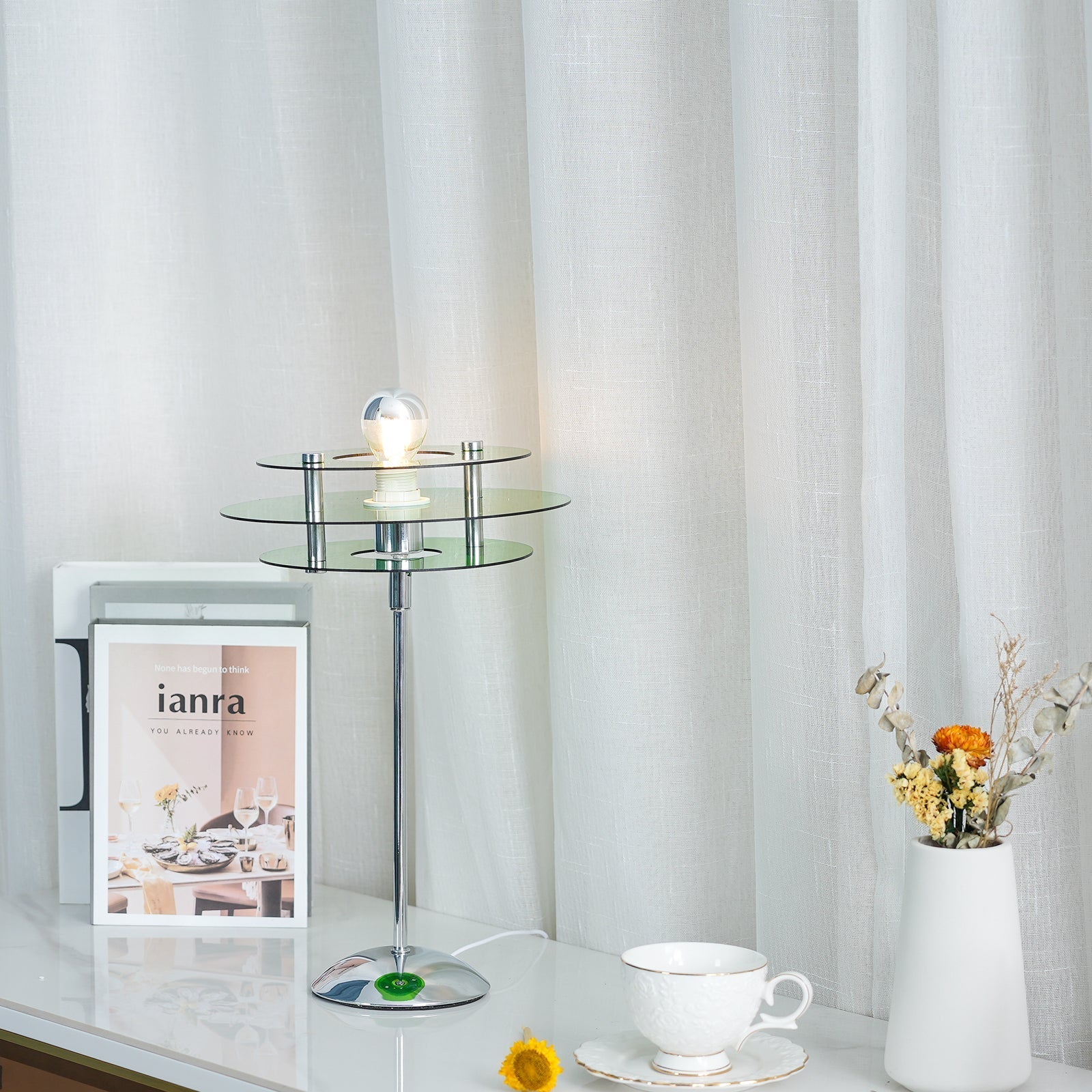 The ReflectaLume – Stylish Geometric Table Lamp is a stunning table lamp that offers the perfect blend of modern design and sophistication. Crafted from multiple acrylic discs with a mirrored finish, this lamp creates a reflective effect that adds elegance to any room. Its geometric design and refined finish make it ideal for above the dining table, in an entryway, or any space where statement lighting is desired.