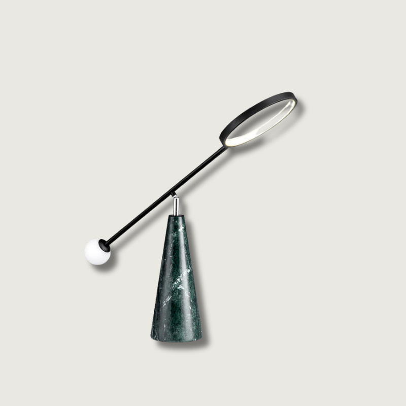 - Varied Finishes: Available in a unique combination of green marble and black with a white lampshade.